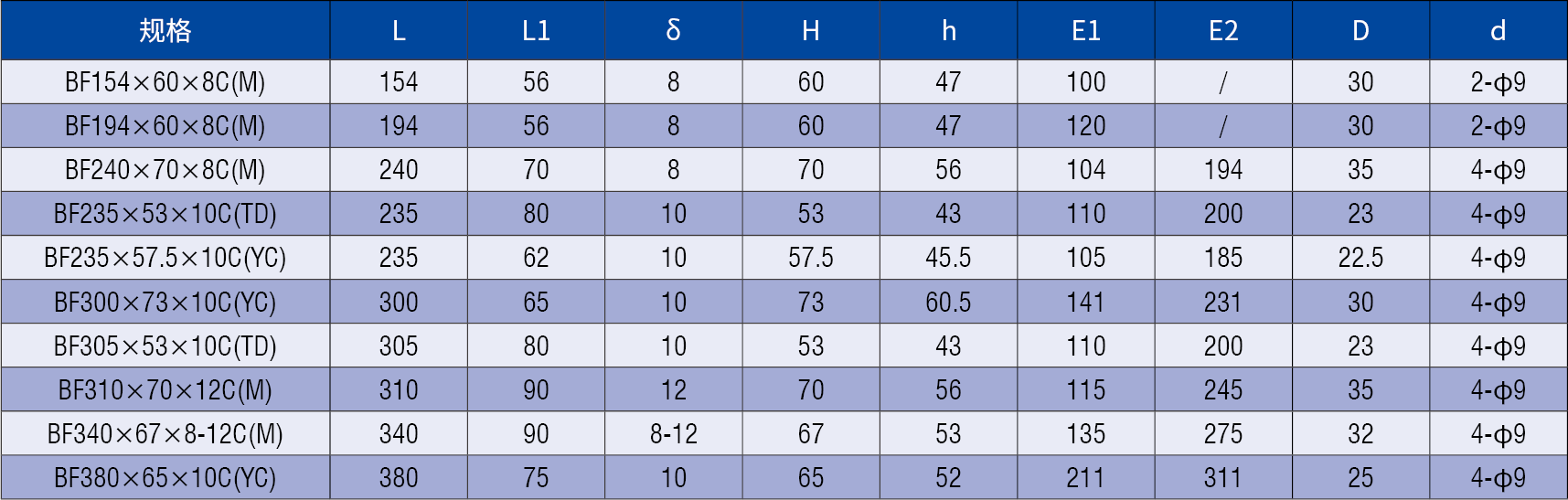 超高分子量聚乙烯埋刮板(BF)規(guī)格表