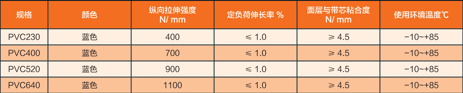 4、帶體上下表面均為毛面,有良好的過輥性能,能保持較好的運行軌跡,不易跑偏。