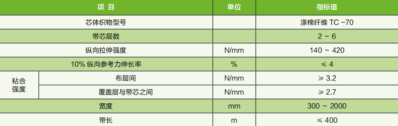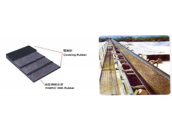 以經(jīng)、緯向全棉(或滌棉混紡交織)帆布作為骨架層,帶體具有柔韌性及成槽性好,而且價(jià)格較低于其它材質(zhì)的輸送帶。